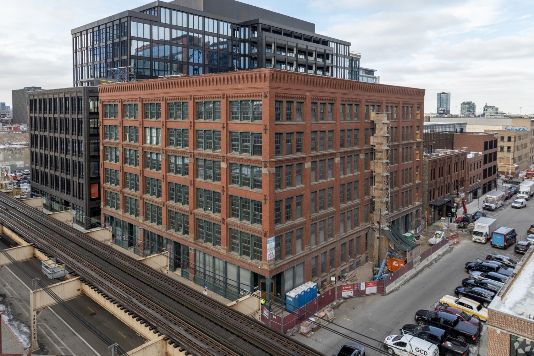 It is being redeveloped into office and retail space by developers Fulton Street and Shanna Collective. The historic building is connected to a ground-up office project nearing completion at 919 W. Fulton. Collectively, the buildings recently were rebranded as The Fulton.